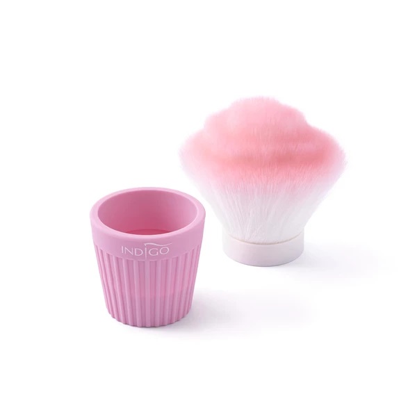 Βουρτσάκι για την σκόνη με μαλακές τρίχες που επιτρέπει τον καθαρισμό των χεριών και των νυχιών από τη σκόνη των νυχιών που δημιουργείται κατά τη διάρκεια της εργασίας. Μοιάζει με γλυκό, ροζ cupcake .