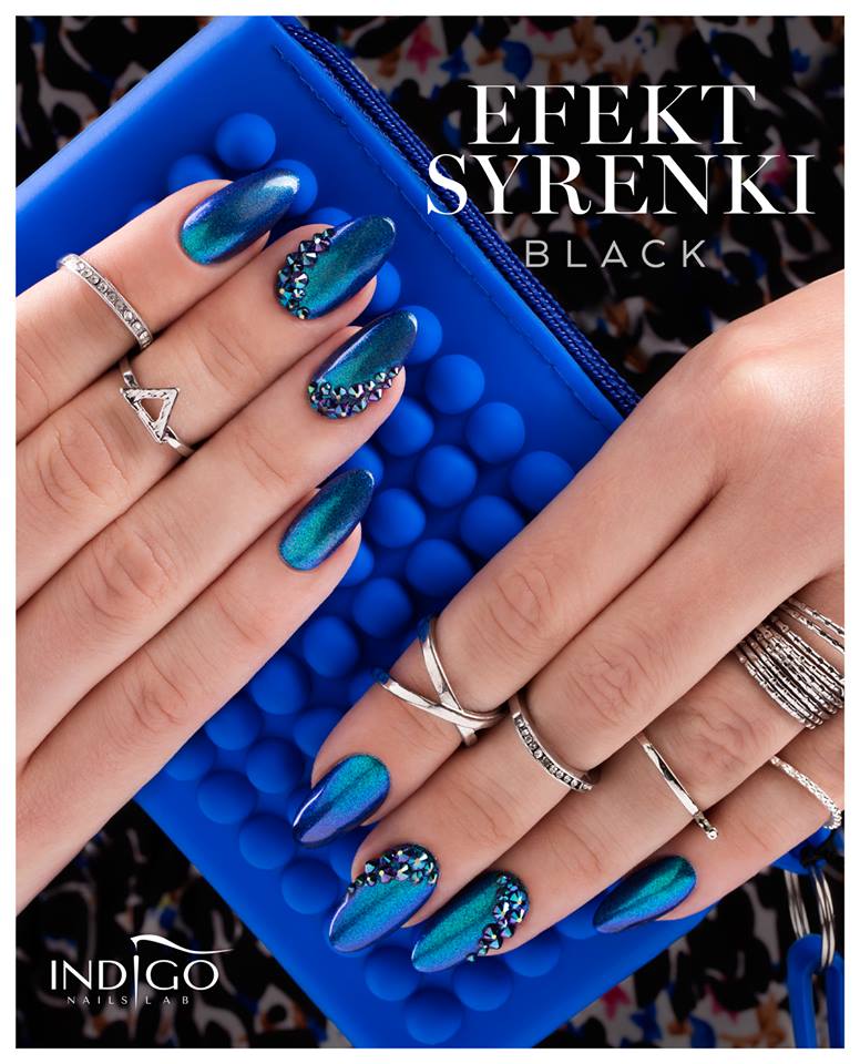 Το Black Mermaid Effect είναι μια σκόνη νυχιών με λεπτά σωματίδια που δημιουργεί μια αστραφτερή επιφάνεια με τις αποχρώσεις του σκούρου μπλε και του πράσινου αφρού της θάλασσας. Συνιστάται για εφαρμογή σε σκούρα χρώματα.