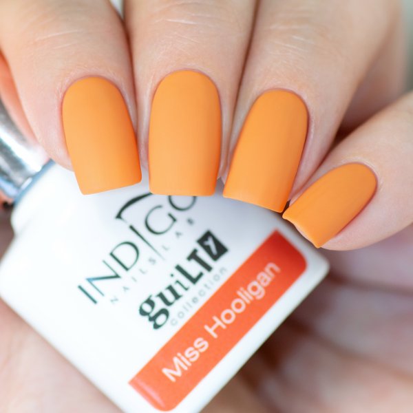 Το μανικιούρ με το Miss Hooligan από τη συλλογή Guilty! θα σας δώσει θετική ενέργεια και θα κάνει το φθινόπωρο να μείνει για πάντα στα νύχια σας. Η πορτοκαλί απόχρωση θα ταιριάζει υπέροχα τόσο σε απαλές εμφανίσεις όσο και σε τολμηρά, έντονα σχέδια. Ακούγεται ενδιαφέρον; Ας το κάνουμε!