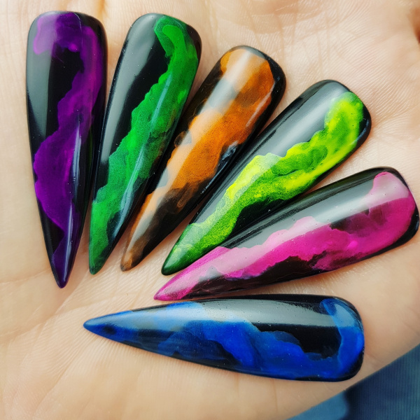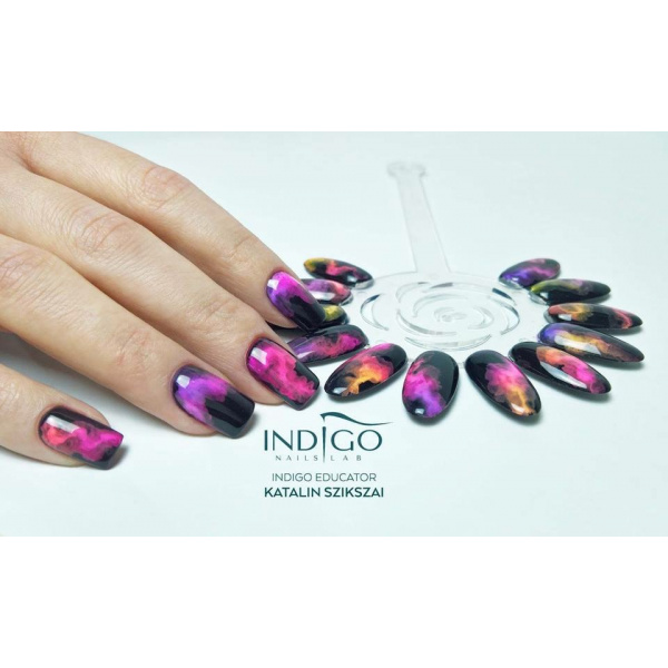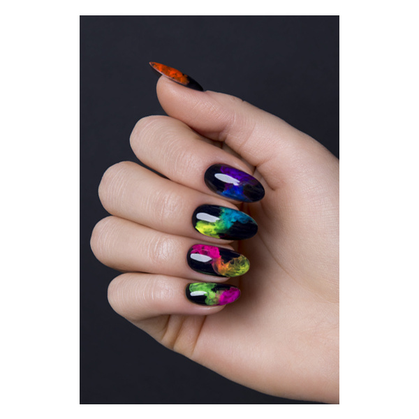 Αν θέλετε να χρησιμοποιήσετε Smoke Powder σε όλη την επιφάνεια του νυχιού, π.χ. ombre, καλύψτε το νύχι με βερνίκι Mr White και πολυμερίστε το στη λάμπα για 30 δευτερόλεπτα. Τρίψτε το Smoke Powder στο στρώμα διασποράς. Βουρτσίστε την περίσσεια πούδρας χρησιμοποιώντας ένα μαλακό και καθαρό πινέλο. Στερεώστε με ένα top coat, π.χ. Wet Look.