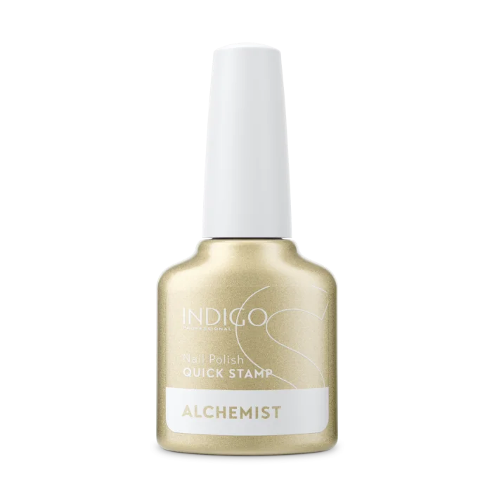 Alchemist – μεταλλικό ψυχρό χρυσό από την προσφορά Indigo, με πολύ λεπτά σωματίδια. Βερνίκια νυχιών νέας γενιάς για σφράγισμα που κάνουν το σφράγισμα παιχνιδάκι. Η μοναδική τους φόρμουλα στερεοποιείται πιο αργά σε σχέση με τα προϊόντα άλλων εταιρειών, καθιστώντας εύκολη την εργασία ακόμα και για όσους δεν έχουν εμπειρία. Γρήγορη σφραγίδα – πάρτε το χρόνο σας.